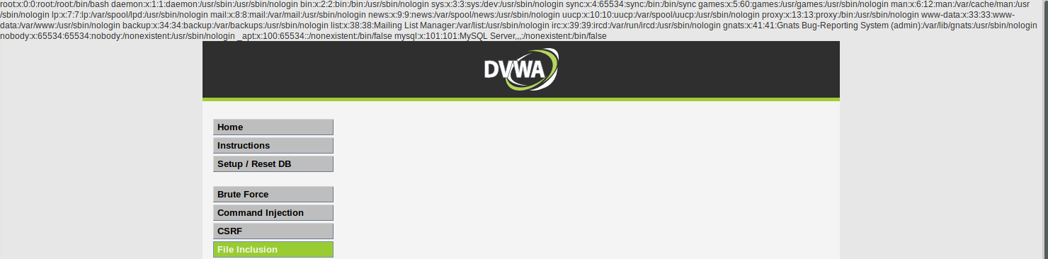 http://localhost:9000/vulnerabilities/fi/?page=../etc/passwd